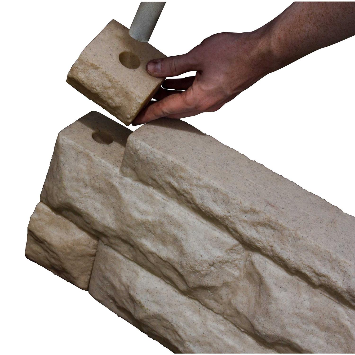 Need to end your Garden Wizard rock wall section against a flat surface such as house cinder blocks or a deck? The Garden Wizard Border Finish Kit closes the connector gaps on your terminating rock wall. Each kit comes with a single peg stake to hold the blocks in place (stakes can work on flat surfaces or be driven into the ground by sliding a piece of metal or rebar into the sleeve). Kits are available in all Garden Wizard rock wall colors.