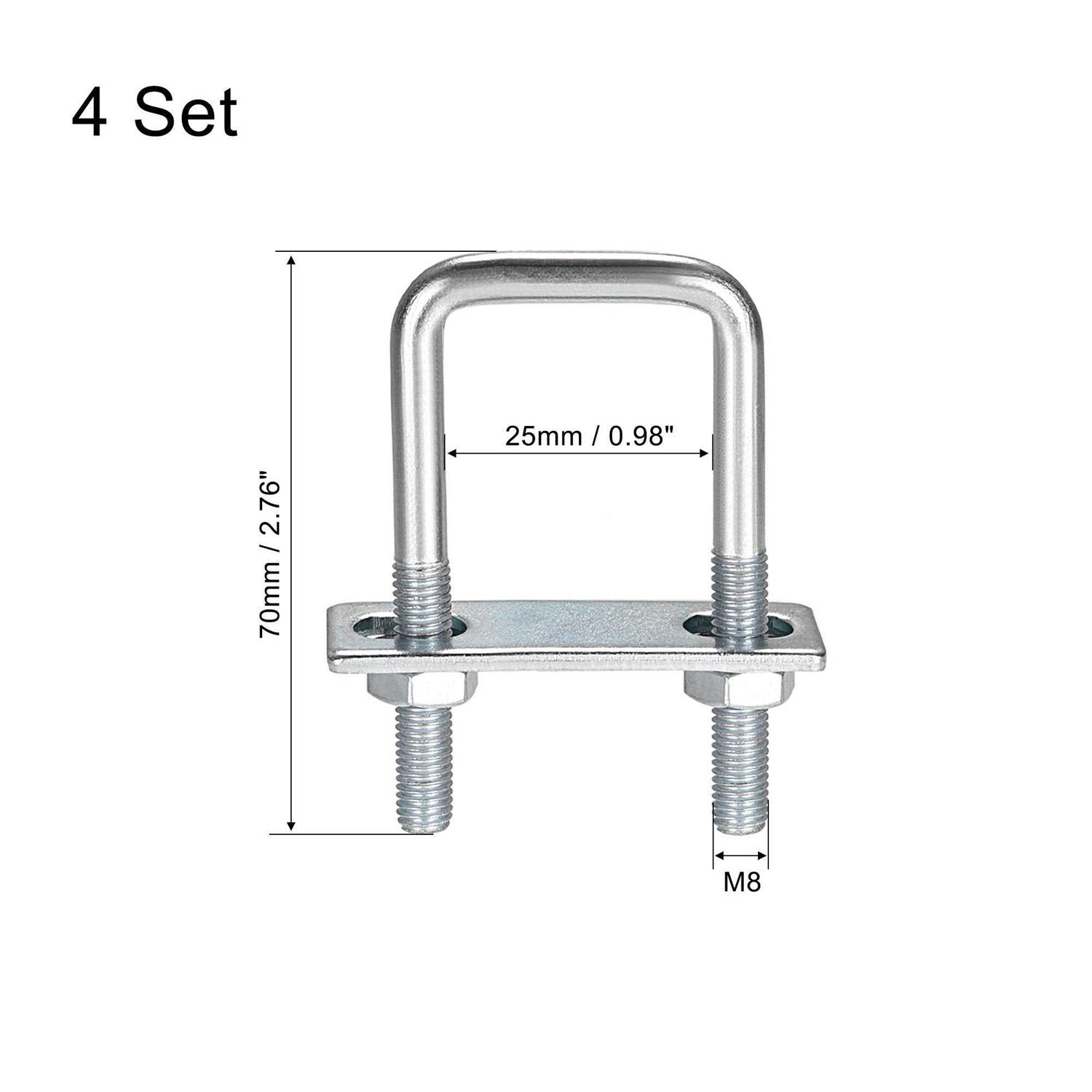 U-Bolts Carbon Steel with Nuts Frame Plate Round Washers | Harfington, 25x70mm(W*L) / 4Set
