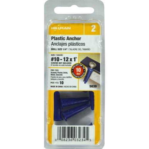 Ideal for anchoring in concrete, brick or wallboard, plastic anchors work well with various diameter sheet metal screws. The anchor is corrosion-resistant and a pre-drilled hole is required. Use these anchors for general, light-duty, static applications where holding power is not critical.