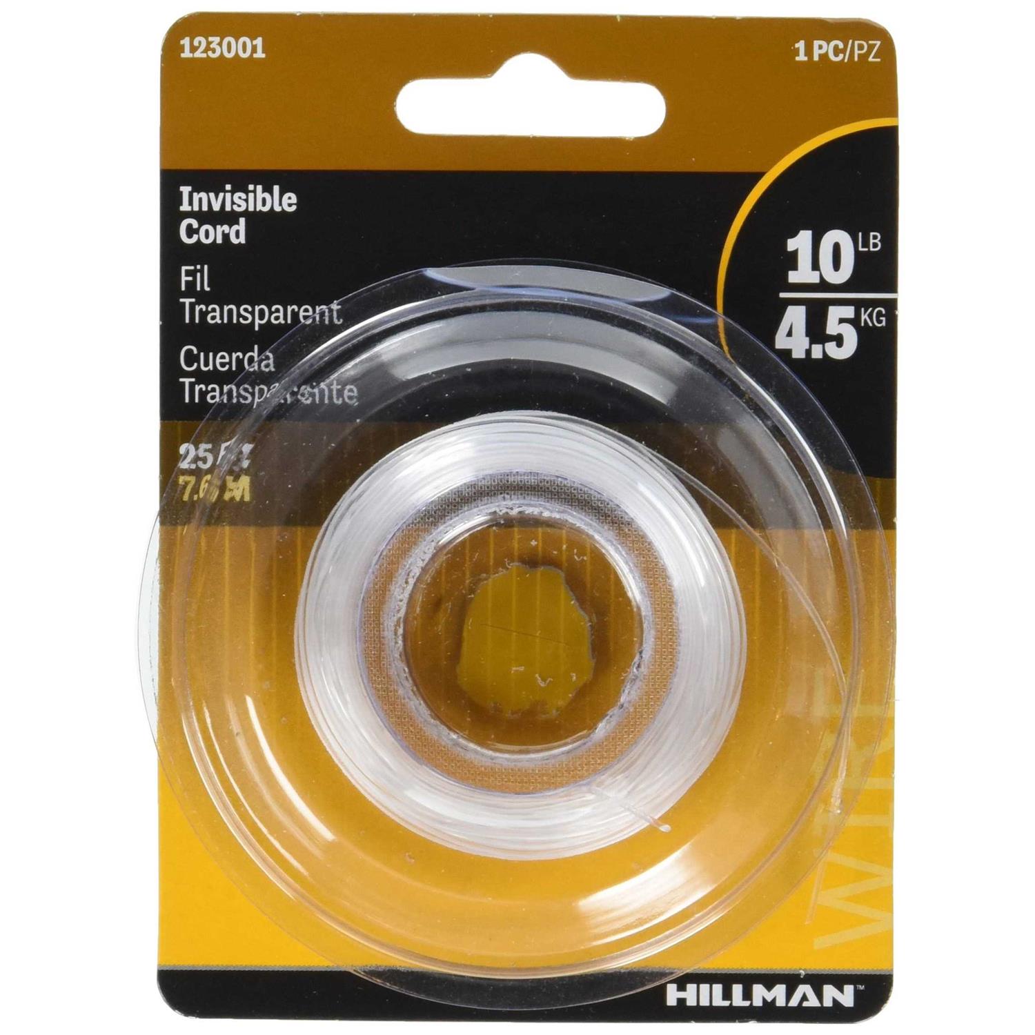 The Hillman Invisible Hang Cord is ideal for light duty project where there is a need for a cord that is less visible perspectively. It comes in a expedient package that resist knotting and guides in putting up a knot design that ensures a secure hold. The body of the cord is supple and elastic for convenience.