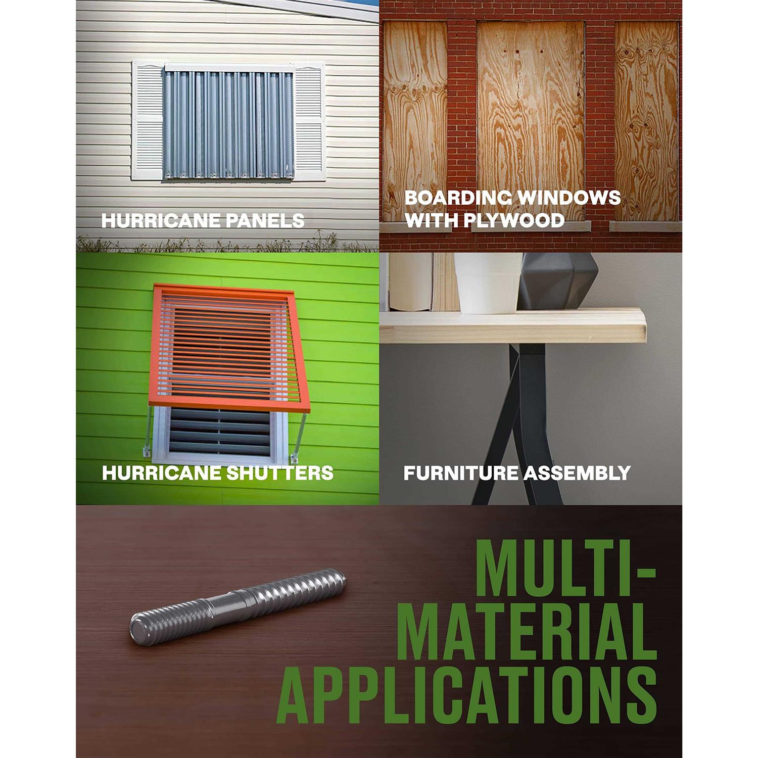 Hanger Bolts by Hillman. Details: Hillman’s Hanger Bolts are made of high-strength stainless steel to withstand adverse weather conditions. Hanger bolts are designed to hang material from wooden structures but can be used with concrete anchors to attach materials to masonry surfaces. Commonly used to install plywood, hurricane panels, hurricane shutters over any exterior glass structure such as windows or sliding doors. Simply install the lag screw into a pre-drilled hole, hang desired material, use a washer wingnut on the machine screw side to secure the material to the structure. Hanger Bolts are headless bolts designed to hang materials from wooden structures. One half of the bolt has a lag screw thread and the other half has a machine screw threading with a blunt tip. The lag screw end is inserted into a predrilled hole and is ideal for overhead application.