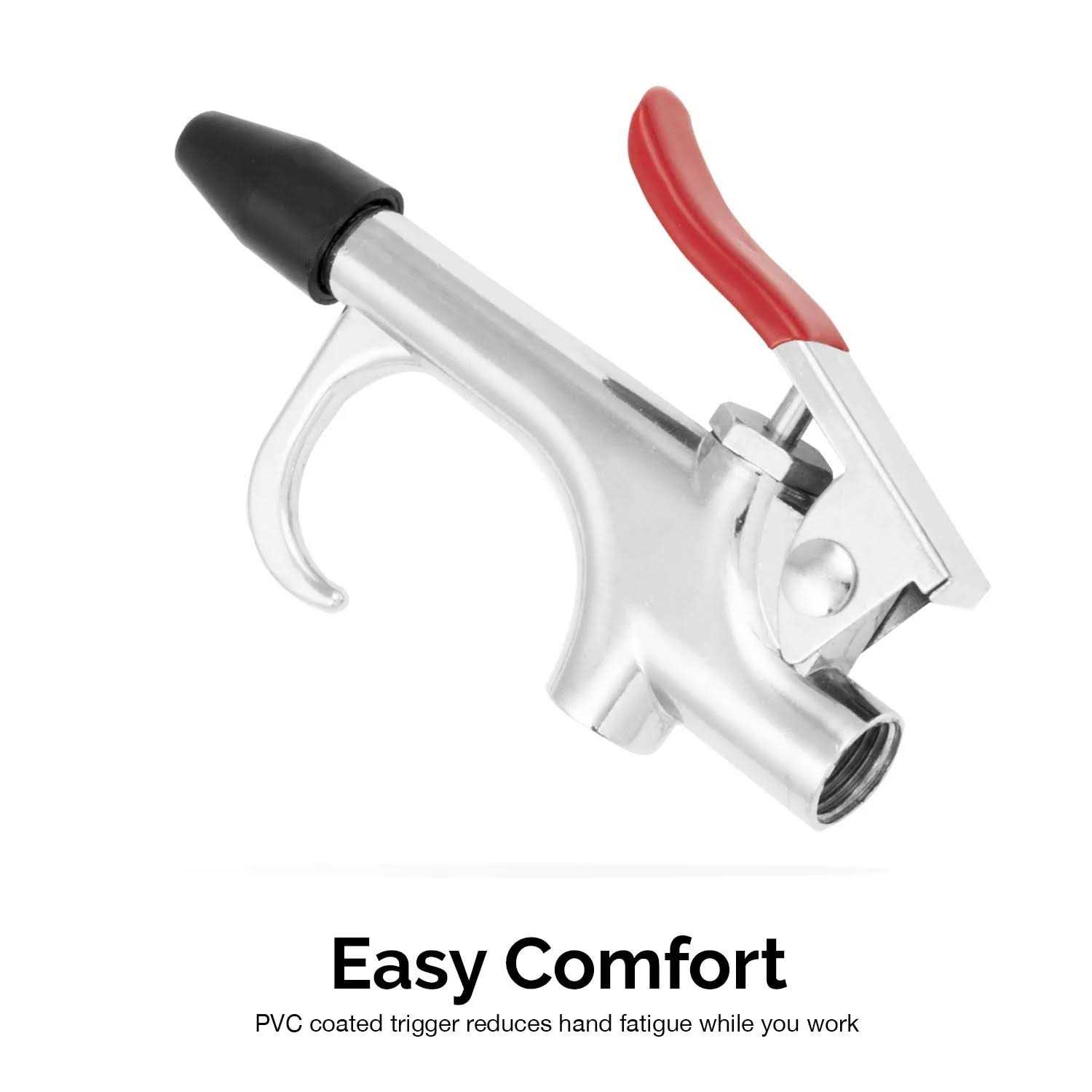 • Easy, convenient thumb-controlled PVC coated pistol trigger air handle and interchangeable rubber nozzle tip for comfort reducing hand fatigue