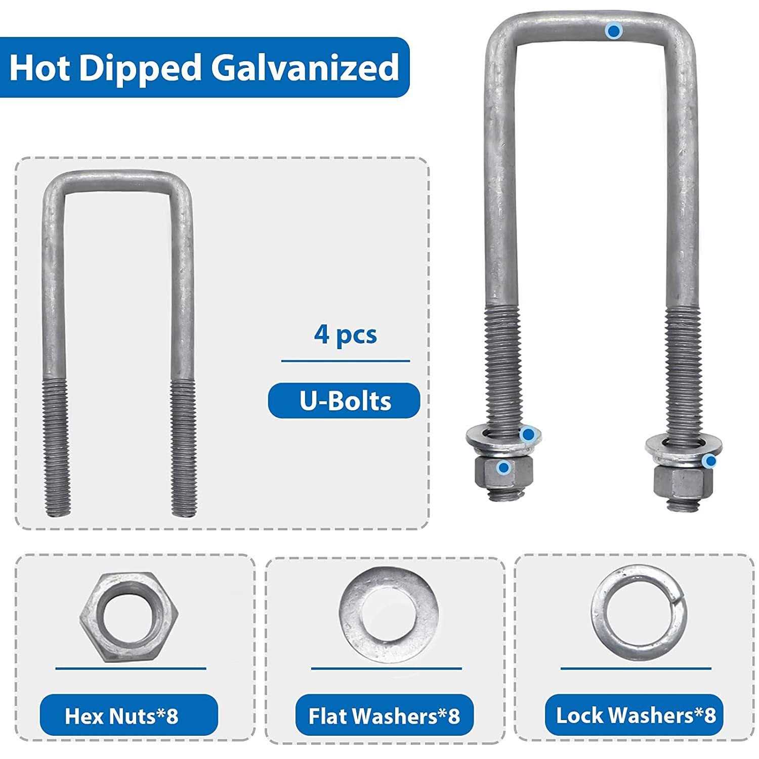 You can get: (4) U-bolts, (8) hexagon nuts, (8) flat washers, (8) lock washers, these additional accessories are also Hot Dipped Galvanized. With these, you can spend less time repairing and more time boating Tips:Use a hand wrench or socket ratchet when installing the nut. Do not use high-speed power tools or impact tools to tighten the nuts. Please be sure to read the description thoroughly to make sure that this is the item you want before making a purchasing decision. Please be aware that slight variations in color may be due to differences in lighting and computer monitor resolutions. Boxes or APOs. An adult signature will be required. Please be sure to have available help on hand to assist you with moving the item to the desired location in or outside of your home. You can request a refund if you are dissatisfied for any reason with your product. Only factory defects are accepted as a reason for a return. The item and package should be in original and perfect condition.