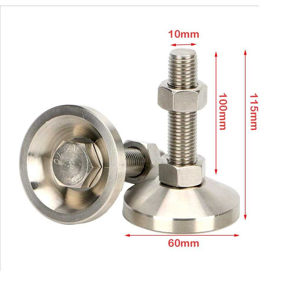 A High Quality Heavy Duty Leveling Legs Material: Stailess Steel Thread Size: M10 x 100mm Total Size:60mmx 60mmx 120mm(L x W x H) Package include: 2 Heavy Duty Leveling Legs. High quality stainless steel mount feet leveler to adjust leg height and leveling uneven legs or when the floor is unlevel or sloping, you can adjust the industrial equipment or furniture to sit level on uneven floors. It can be provide support, shock proof and balance adjustment for mec