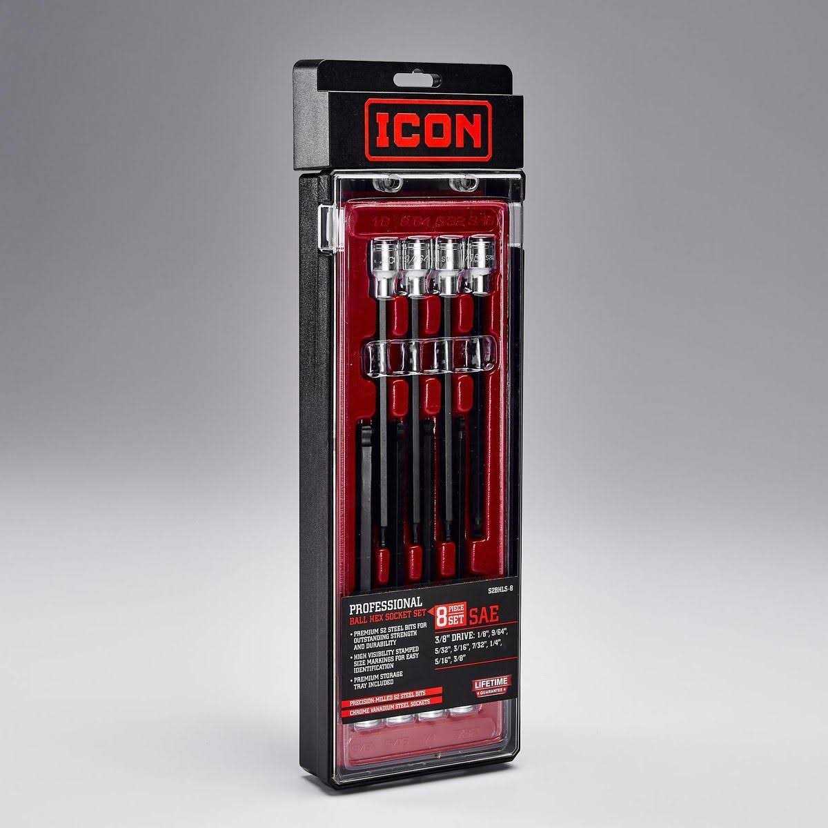 Icon 3/8 in. Drive SAE Professional Long Ball Hex Bit Socket Set, 8 Piece 56586
