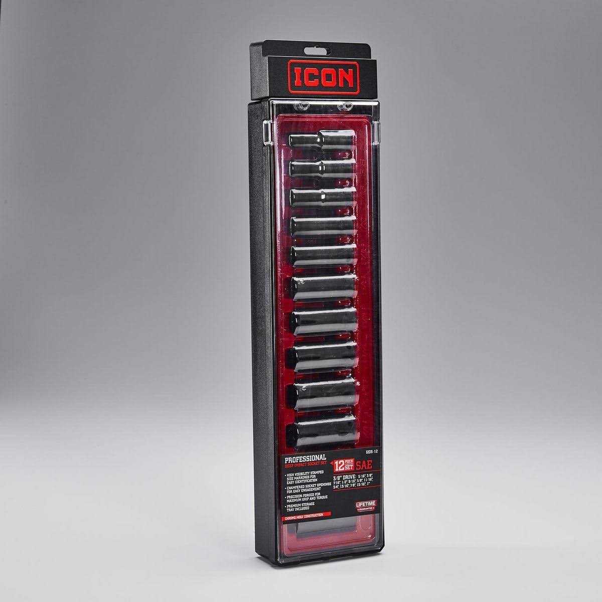Icon 3/8 in. Drive SAE Professional Deep Impact Socket Set, 12-Piece