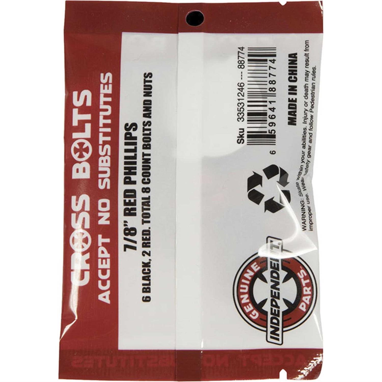 Independent Genuine Parts hardware is specified to the highest standards. Each set contains 6 black bolts and 2 red bolts. Genuine Parts Phillips hardware features cross logo heads, full size nylon lock nuts, full size bolt heads with Cross insignia, and extended unthreaded shafts for minimal board damage. Available in black, silver, gold and red. 1.25″ and & 1.5″. Updated packaging features 100% recyclable bolt bags.