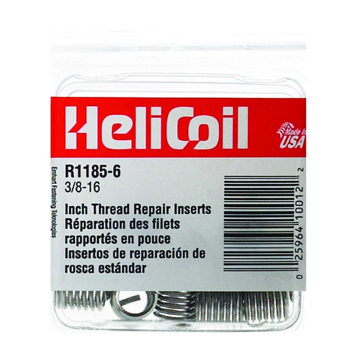 Contains stainless steel thread inserts used to repair stripped threads. The inserts are contained in a sturdy, clear, plastic display box and marked with part number and thread size. No. R1185-4 thru R1185-8 is back-up stock for display No. 5820, inch coarse display; No. R1084-5 thru R4649-10 is back-up stock for display No. 5830, metric coarse display.