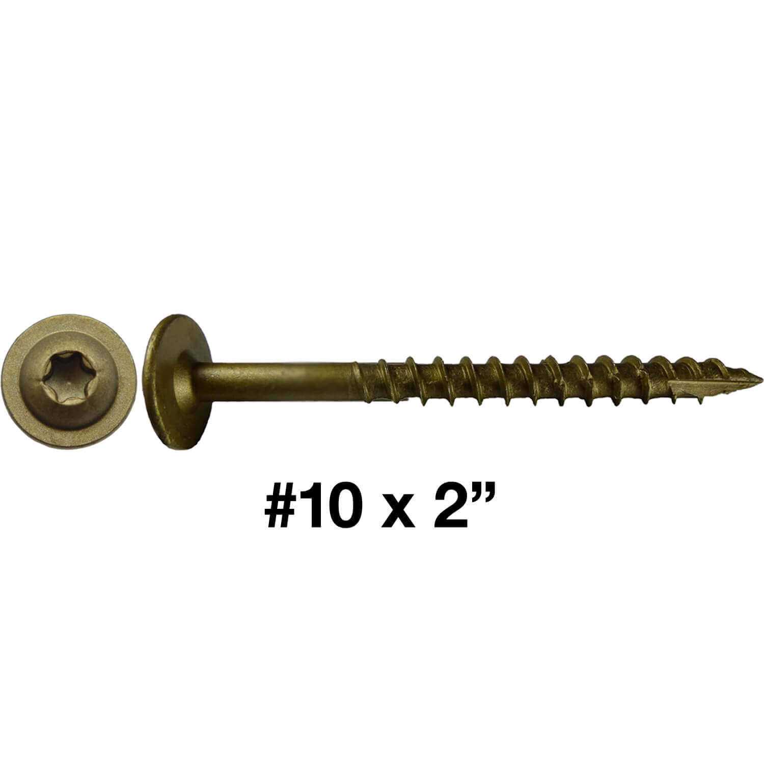 Screws Are Now Coated with a Triple Ceramic Coating for Superior Exterior Protection from corrosion – Coating Has Been Through 1200 Hours of Salt Spray Testing Without Any Coating or Screw Failures – Type 17 Notched Extra Sharp Wood Screw Point Reduces the Need for Pre-Drilling in Even Hard Woods – Modified Truss (Washer) Head Provides High Compression Forces & Neat and Finished Appearance. – Flat Head Wood Screw with High Quality Heat Treated Steel almost Eliminates Screws Breakage – Torx/Star Drive Wood Screw Head Provides Twice the Torque of Phillips or Square Drive Screw Heads#10 X 2 inch Gold Star Cabinet Modified Truss Head Screw (Full Box)Modified Truss (Washer Head) Head Screws Are Now Coated with a Triple Ceramic Coating for Superior Exterior Protection – Coating Has Been Through 1200 Hours of Salt Spray Testing Without Any Coating or Screw Failures, Excellent Multipurpose Screws – ACQ Pressure Treated Lumber Compatible, Corrosion Resistant, For Professional Operations & Demanding Industries – Excellent Screws for Both Hard and Soft Wood – High Quality Heat Treated Steel – Modified Truss Washer Head Wood Screws Have the Best Compression Strengths (1/2 inch Head Diameter)Deep, Wide, Sharp Screw Threads Provide Maximum Holding Power – High Quality Screw Threads Cut Cleanly & Easily Through Tough Materials – Type 17 Notched Screw Point for Quick Starts without “Walking”Torx/Star Drive Delivers Twice the Torque of Phillips or Square Drive Screws – Use with T25 Torx/Star Driver Bit – Deep Torx/Star Drive Screws Reduce “Cam-out”Excellent Screw for Cabinetry, Furniture, Roofing, Framing, etc. Torx/Star Drive Wood Screw Head Provides Twice the Torque of Phillips or Square Drive Screw Heads – Screw Engineering Specs:Average Shear Strength of #10 Shank —- 2399 lbs – Average Pull-Out Strength —————– 1283 lbs (Screw Pull Out is Calculated with a 3 inch Length Screw in the wood species: Yellow Pine Wood)
