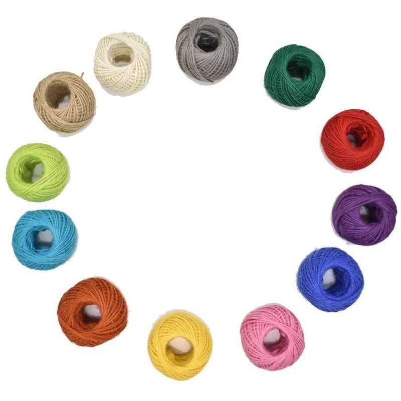Dimension and length: string made of 3 ply and approx. 2 mm in diameter; Rope length: each roll length approx. 33 yards, 396 yards in total, enough long for using and can be cut to the length you need. Quantity: package includes 12 rolls of natural jute twine string; Note: don’t touch water or soak in water. Color: 12 Varied random colors, each color of 1 rolls. 12 different colors meet your different needs. High quality: the twines are made of dyed natural jute with a muted tone that preserves the natural look of the jute. The twines are of 3-ply yarn (at thickness of 2mm each) which is very sturdy and versatile to use. The professional dying process and procedures ensure that the Colors have the authentic appeal won’t normally come off, even when the twines are dampened. Used widely: the colorful twines can be used in numerous occasions of craft projects / DIY projects such as vase embellishment, banner-making, photo and artwork display and creation of monogram arts; gift wrapping ; any packaging; and gardening. The Colorful twines are well suited to dress up your events and celebrations with anything that are made with of them! 12 Colors 2 mm 3 ply natural twine string cord rope roll for artworks, DIY crafts, decorations, totally 396 yards (each roll of 33 yards). /b br br Specifications: /b br Quantity: /b 12 rolls br Material: /b Natural Jute br Cord diameter: /b approx. 2 mm, 3 ply br Length: /b approx. 33 yards of each roll, 396 yards in total. Color: /b 12 Random Colors. Include: Gray, Purple, Lake blue, Sapphire Blue, Red, Pink, Orange, Grenn, Light Green, White, Yellow, Natural. br Wide applications: /b br Jute is an incredibly versatile fiber that is both soft and strong, and is traditionally used for making sacks, carpets, and wrapping fabrics. br These colorful twine string can be applied in arts and crafts wrapping gifts, wine bottle decoration, DIY projects, room decoration, applicable to festival decorations and gardening. br br Note: /b br Jute fiber is recyclable and thus an environmentally friendly alternative to using synthetic fibers, the twine can be reusable for your other things. br You are advised to store the twines in dry and cool environment, esp. after the pack is opened. br br Package included: /b br 12 Rolls x Random Colorful Jute ropes br