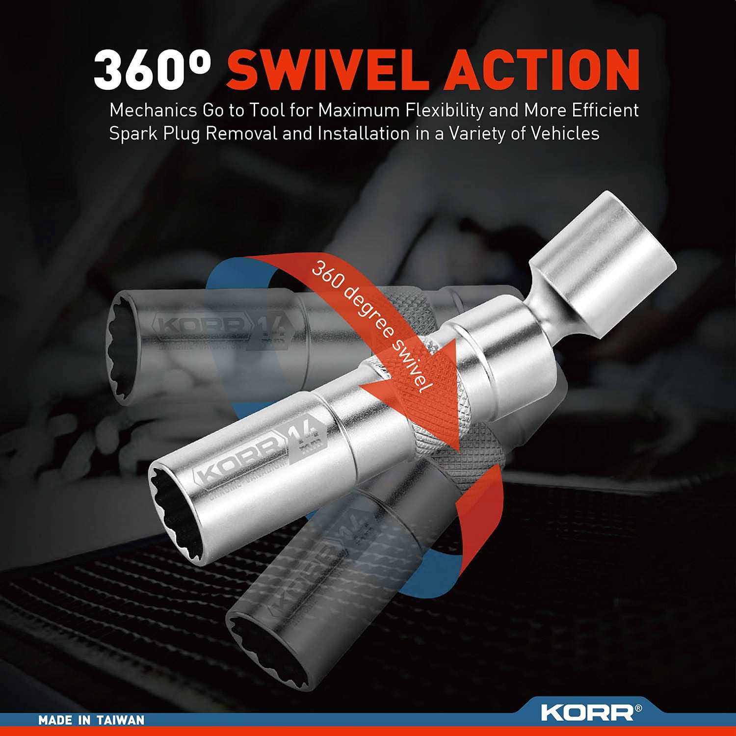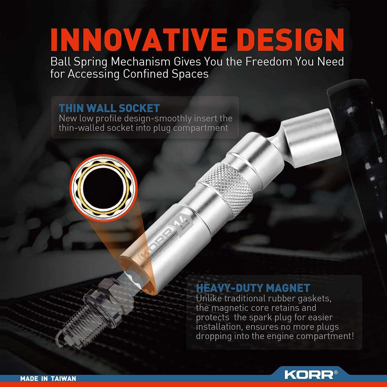 Korr Tools KSI004 14mm Thin Wall Magnetic 3/8-Inch Drive 12-Point Swivel Spark Plug Socket