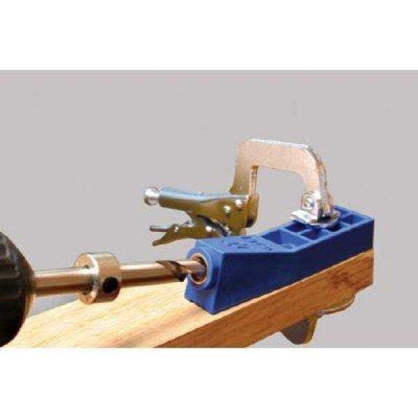 The single drill guide Mini Kreg Jig will go just about anywhere you can reach with a drill. So whether you need pocket holes on a board at your workbench or need to crawl under a table to make a repair, the Mini Kreg Jig gets the job done. The rugged design is built to last, including the hardened steel drill guide that comes with a lifetime guarantee. A great started system for pocket hole joinery. This kit includes the Mini Kreg Jig, step drill bit, depth collar, and an Allen wrench for ancho
