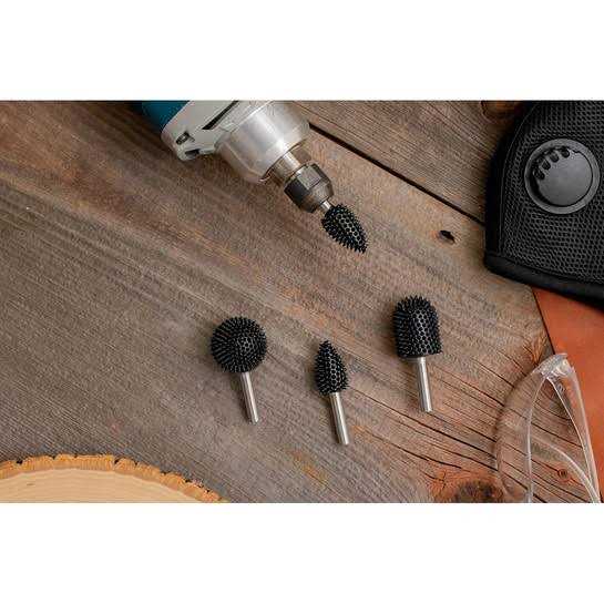 This is an excellent starter kit option for anyone new to power carving or new to Kutzall performance burrs. Kutzall power carving burrs cut faster, longer and require less cleaning than other rotary carving tools. The Kutzall Original tool line provides fast stock removal with an exceptional finish making them a tremendous universal bit. The Kutzall Extreme burrs offer aggressive, razor-sharp teeth that efficiently remove large amounts of material while providing precise control.