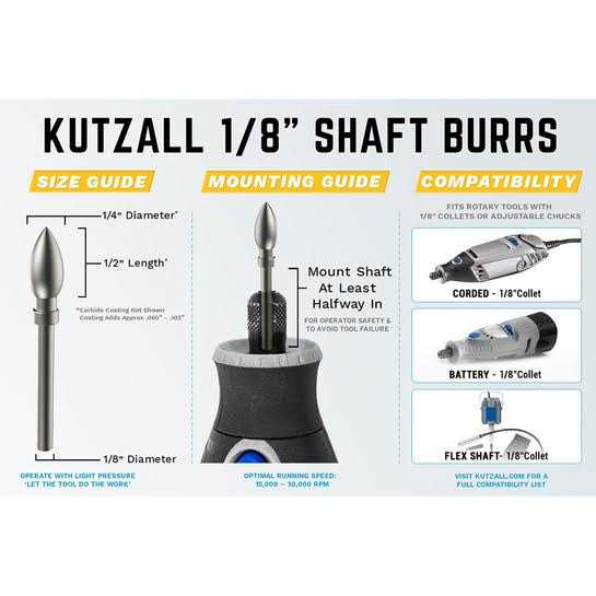 Kutzall Variety Rotary Burr Set – 1/8 inch Shaft – 5 Piece