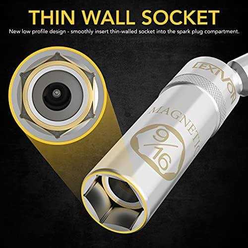 LEXIVON 9/16-Inch Spark Plug Swivel Socket, 3/8″ Drive x 6″ Total Length | Enhanced Magnetic Design with Thin Wall Socket, CR-V Steel (LX-SSPS9166)