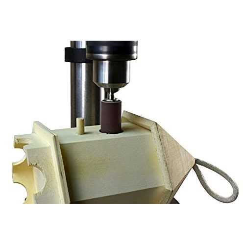 Convert your drill or drill press into a mini spindle sander, ideal for smoothing out rough edges and cuts, sanding the inside surfaces Cleans up holes and band-saw marks on contour cuts.
