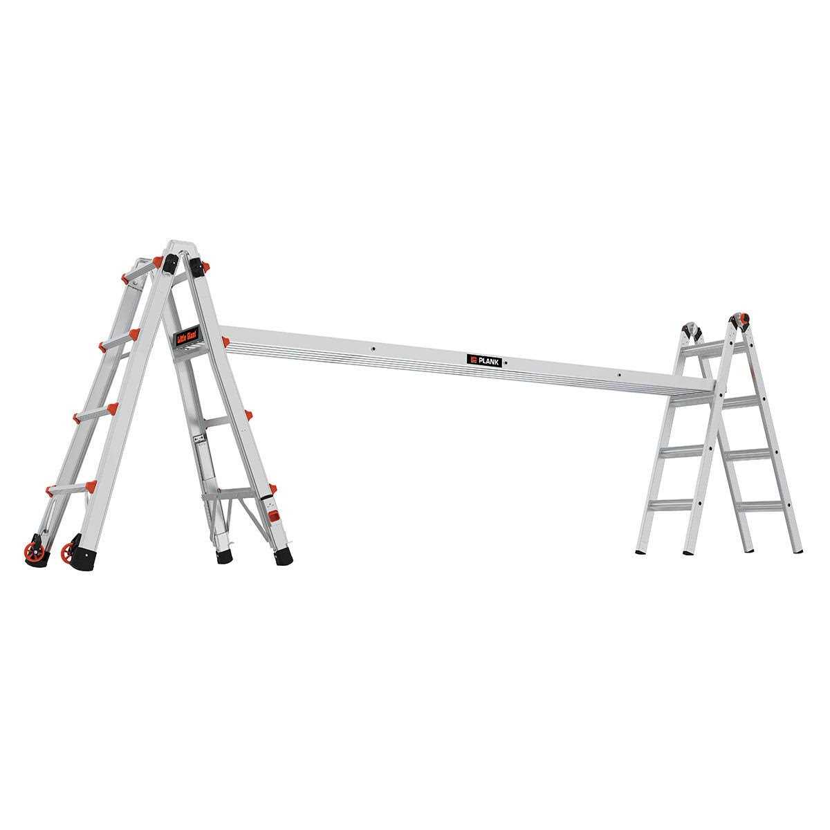 The Little Giant Telescoping Plank turns your multi-position ladder into trestle-and-plank scaffolding when you attach Trestle Brackets to your ladder. The Plank hooks securely to the ladder rungs of the inner and outer section of your ladder to give you a comfortable, solid platform to stand on while you mud, hang drywall or install light fixtures. The Telescoping Plank allows you to replace expensive and labour-intensive scaffolding systems and adjusts to the length you need available in 6 to 9, 8 to 13, and 9 to 15 sizes. The lightweight Telescoping Plank is made from aircraft-grade aluminum and is rated to hold two people with a maximum weight of 500 lbs. Trestle Brackets and ladder are sold separately.