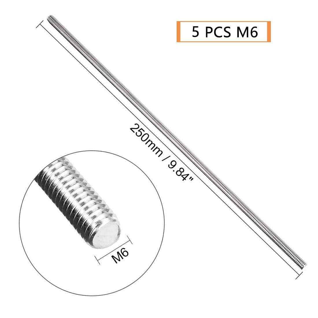 5Pack M6-1.0mm 304 Stainless Steel Fully All Threaded Rod Studs 250mm Long Threaded Screw, Right Hand Thread Bar Studs Rods for Anchor Bolts, Clamps
