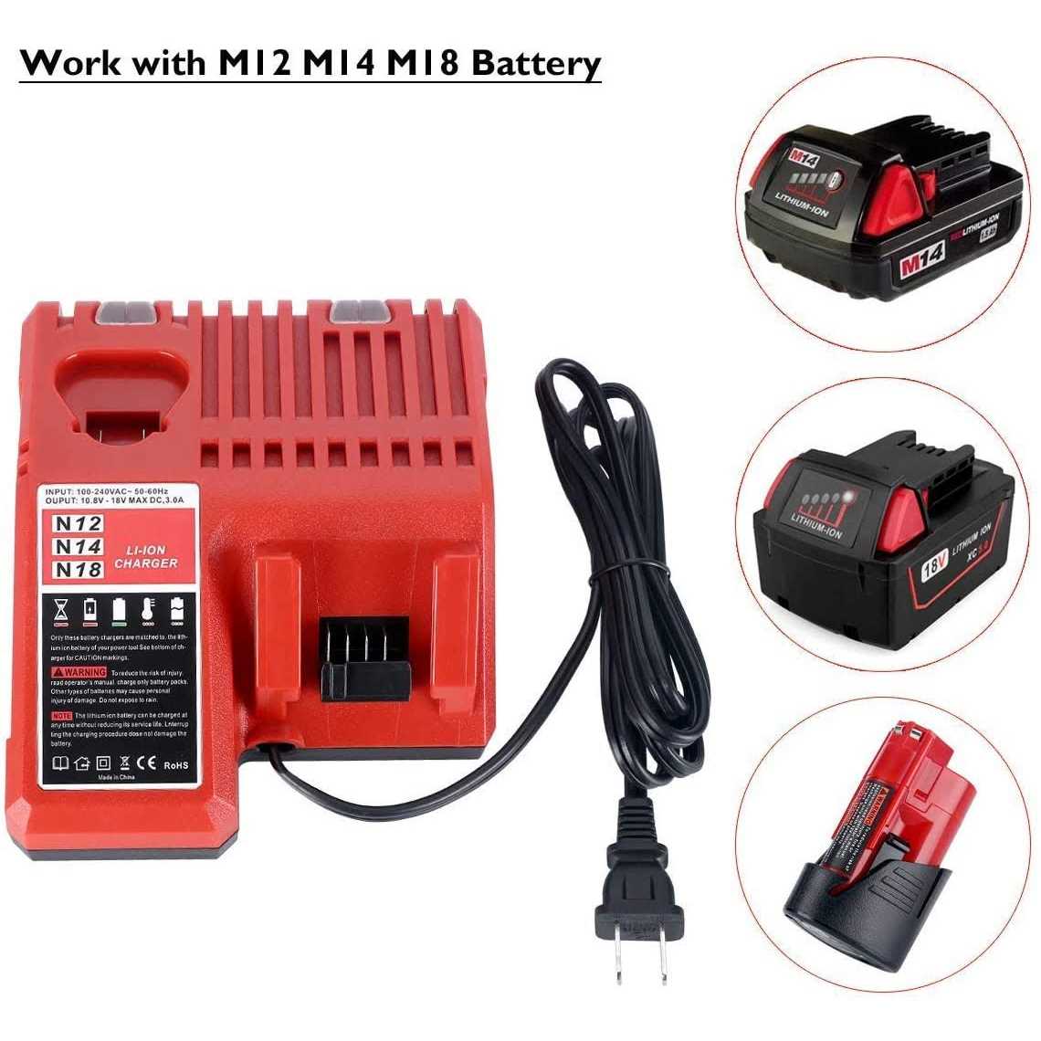 M18 & M12 Rapid Charger Replacement for Milwaukee 48-59-1812 12V&18V XC Lithium Ion Battery 48-11-1850 48-11-1840 48-11-1815 48-11-1828