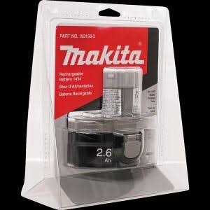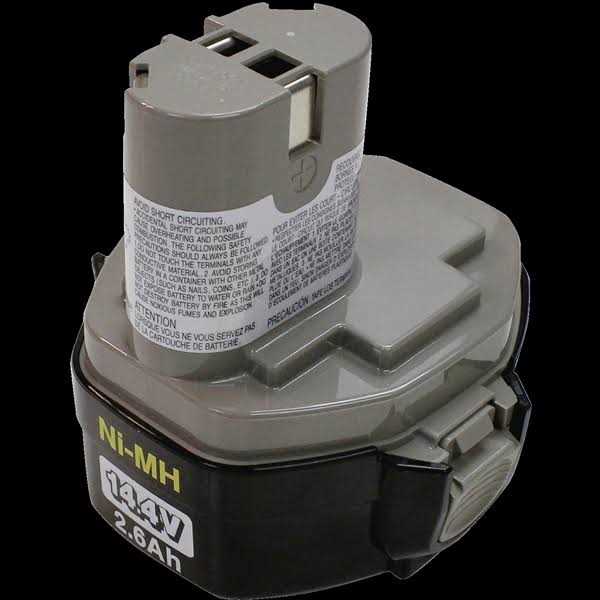 Model 1434 – Makita’s 14.4 Volt Nickel-Metal Hydride (Ni-MH) battery is a type of rechargeable battery similar to a Nickel-Cadmium (NiCad) battery but without the expensive and environmentally-unfriendly metal cadmium. Features 2.6 amp hours (Ah) of power. These pod-style Ni-MH batteries are with literally no “memory effect.” The multi-contact terminals ensure a tight connection to the power tool, even under extreme vibration. Shock-absorbing construction protects battery cells against dust and vibration.