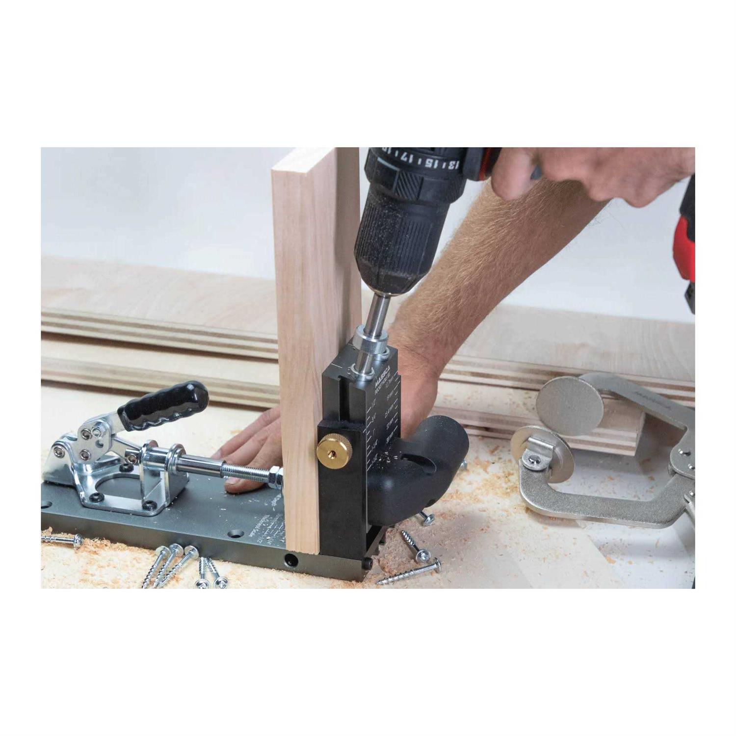 - Each pocket hole jig kit features an easy drill depth knob to quickly adjust to the thickness of the wood avoiding damage and splitters