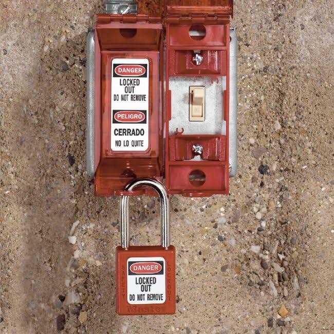 Best used for electrical lockout applications as part of a comprehensive OSHA compliant lockout/tagout safety programme. Wall switch cover locks out both toggle and paddle wall switches with a padlock (sold separately) to help protect against switch operation during maintenance and repair. Dimensions: 4-3/4 in. (121 mm) L x 1-3/4 in. (44 mm) W x 1 in. (25 mm) D; Accepts padlock shackle up to 5/16 in. (8 mm) in diameter (padlocks sold separately). Create a lockout tagout programme specific to the machinery in your facility, including equipment that is not capable of being locked out. Use Master Lock lockout devices for equipment that can be locked out and tagout devices to identify who is performing maintenance. Teach employees the lockout tagout procedures and be sure authorised employees can perform the procedure accurately. Monitor and maintain that the implemented procedures are being performed. Lockout tagout procedures as well as employees should be audited at least annually. Lockout tagout devices are best used as part of a comprehensive OSHA compliant lockout tagout safety programme.
