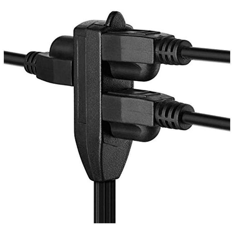 Maximm 360 Rotating Flat Plug Extension Cord/Wire The rotating extension cords are unique for their sleek and adaptable design. They are versatile due to its rotating plug providing angular flexibility to a full 360 degrees, the prongs rotate in the plug so you can aim the cord in any direction you wish without blocking the other outlets. Clutter ControlMaximm Solves those power problems with ease using the Flat Plug Rotating Extension Cord. It has a space-saving design to eliminate bulky or awkward cords. Since it hugs the wall nicely and extends only a half an inch from the wall bending to a 90-degree angle – so it doesn’t poke into adjacent objects – you can place your desk, couch, bookshelf etc, right up against the wall freeing up some space. Multiple UsesThe three outlet extension cord just makes it easy and convenient by providing you with up to 3 additional outlets for power distribution, letting you add another appliance or device right there without pulling out an extra cord and getting the same extension. The outlets are arranged with 2 plugs spaced conveniently on one side with the other plug on the opposite side. Quality construction The extension cord is UL listed and adheres to industry standards for safety and quality assurance for an added peace of mind.