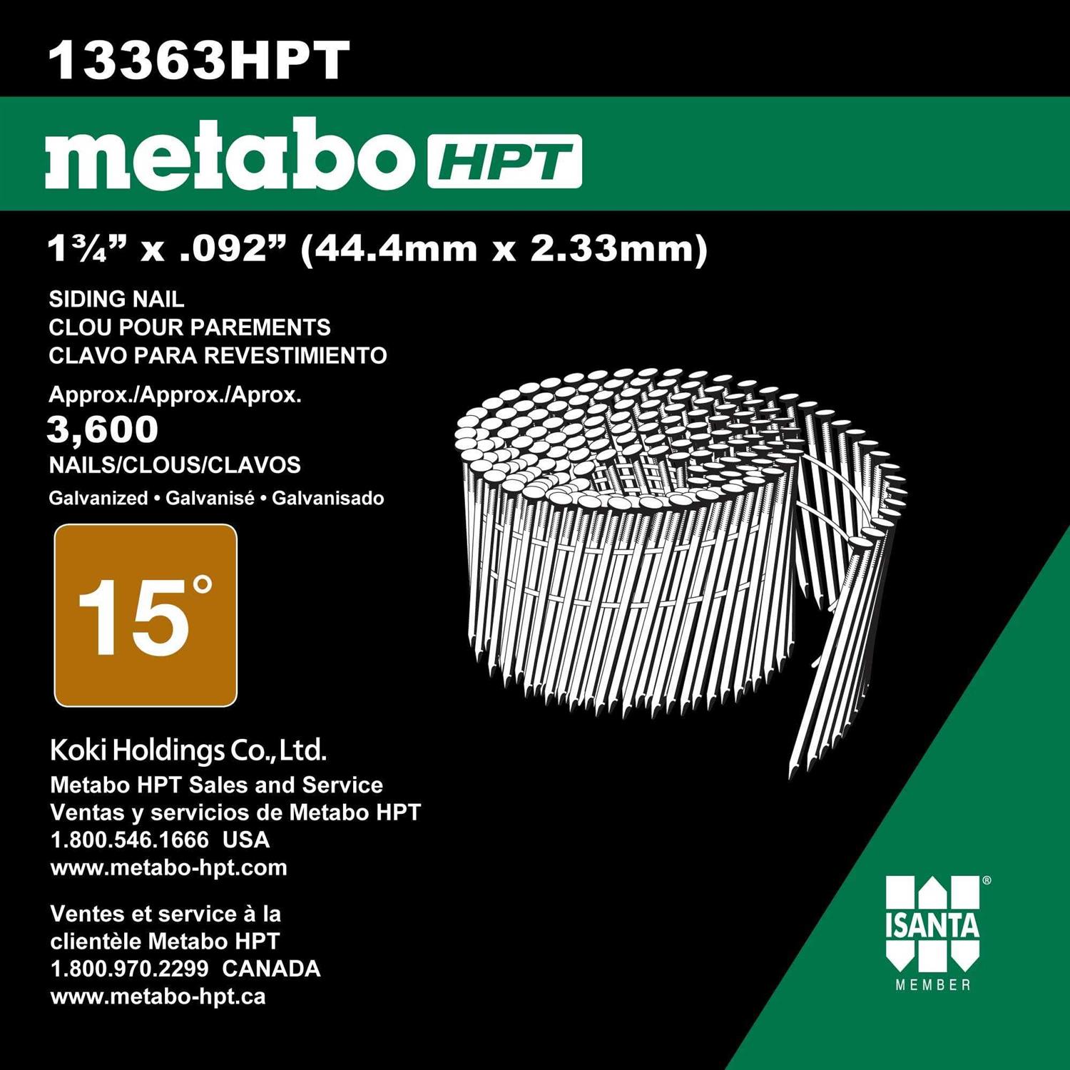 Metabo HPT 1-3/4 inch Full Round Head Wire Coil Siding Nails| 3,600 Count | 13363HPT