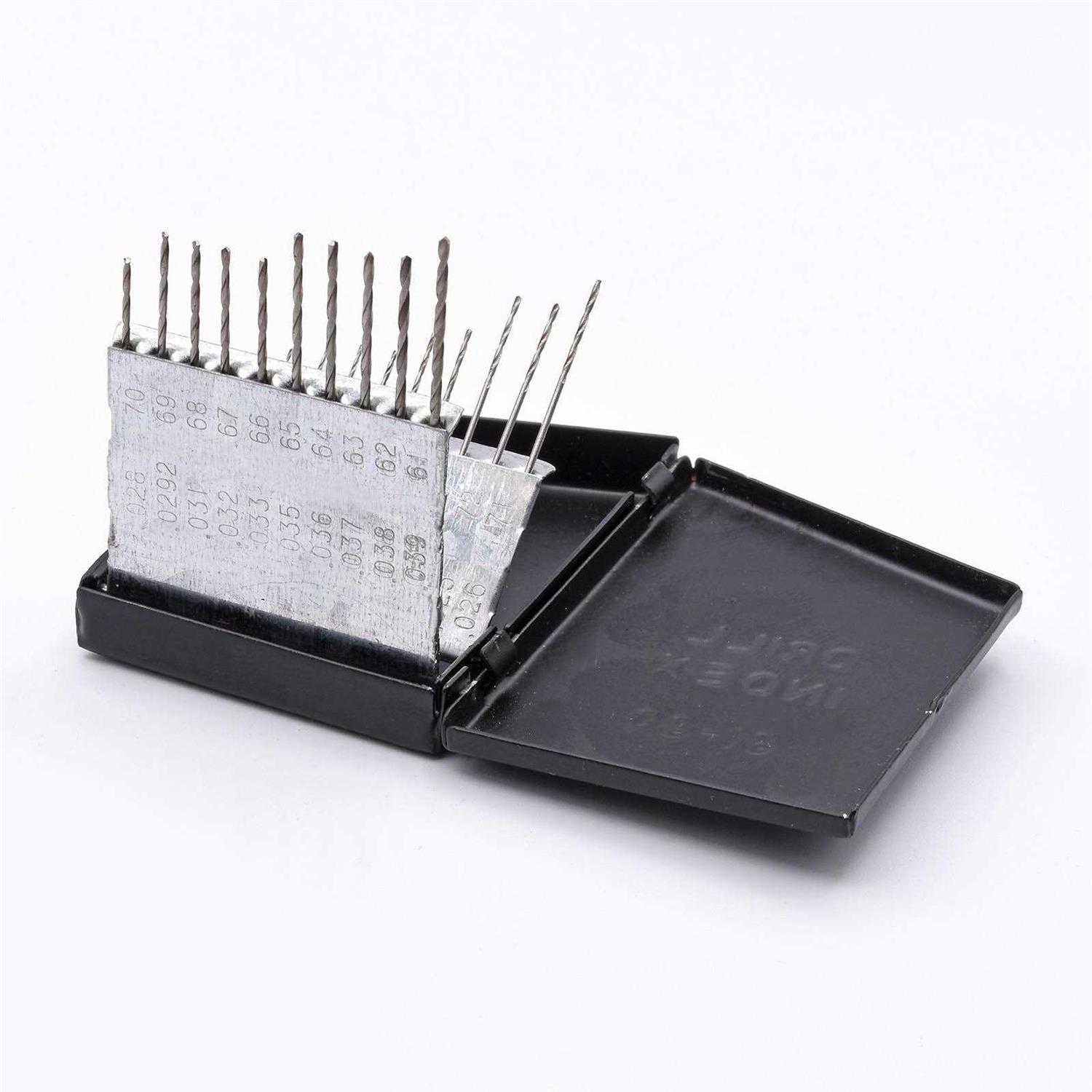 Our drill bits are top quality high speed steel for use on wood, plastic and metal and will stay sharp far longer than ordinary carbon bits. Set includes 20 bits from #61 (.039 inch) to #80 (.0135 inch) plus a folding steel index with embossed I.D. for each bit.