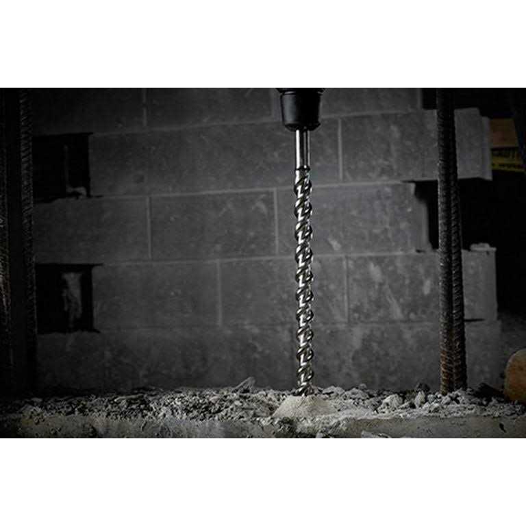 Breaker point pulverize the material leading to up to 20% faster drilling speeds. Rebar guards protect the bit when hitting hard aggregate and rebar leading to longer life. Variable flutes remove the dust out of the hole more efficiently resulting in up to 15% more holes per battery charge. Wide flute entrances lead to faster drilling speeds, while reinforced flutes prevent bit breakage, rendering increased durability in tough concrete applications. The centering tip allows for exact spot drilling. All SDS-Max drill bits meet the ANSI specification for drilling holes for anchor applications and include wear mark indicator when signifying when the bit no longer meets the ANSI spec.