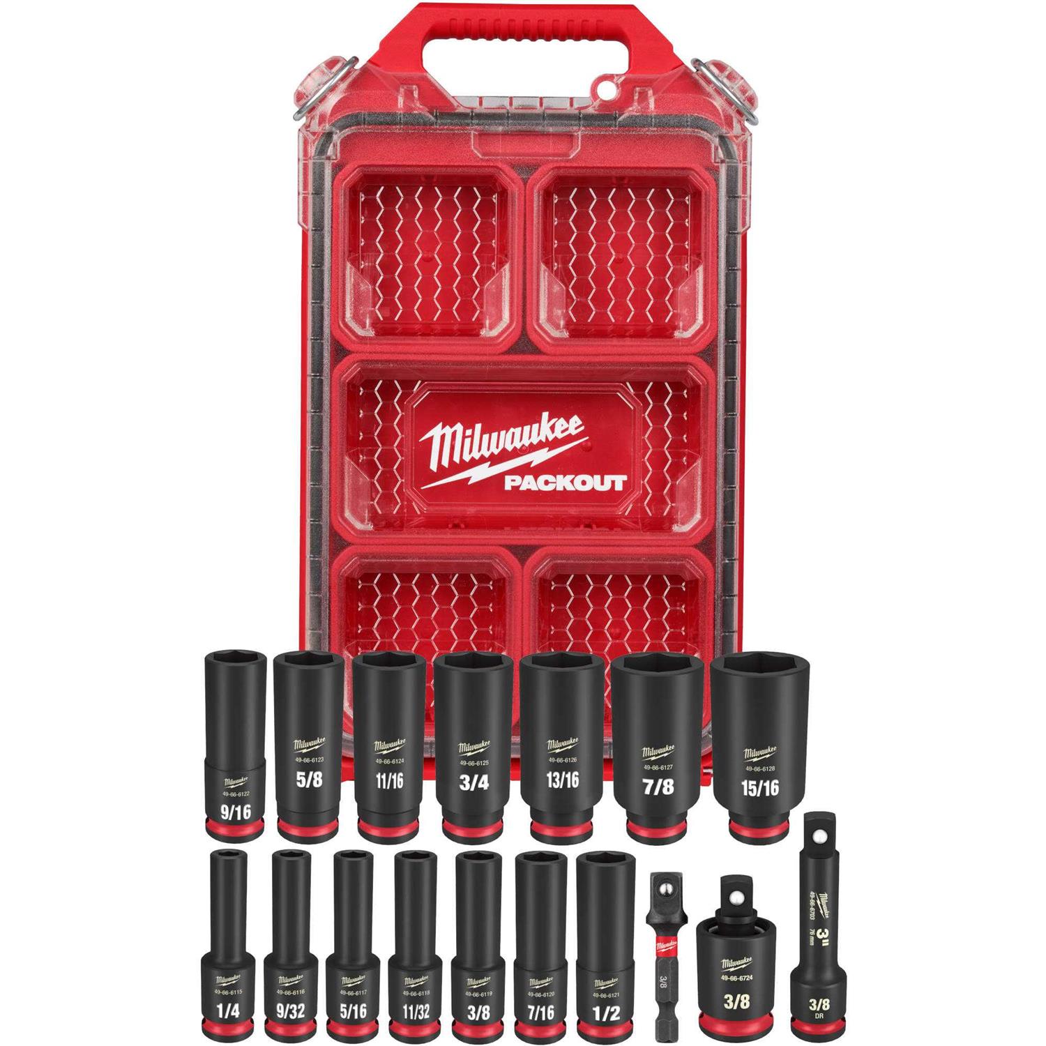 Milwaukee 49-66-6800 Shockwave Impact Duty Socket 3/8-In. 17-Piece SAE PACKOUT Set