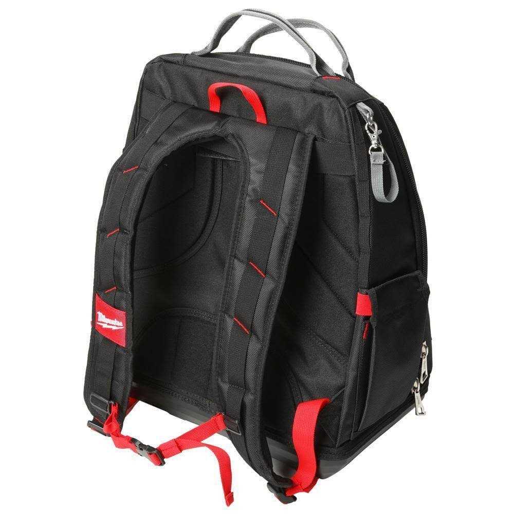 Enjoy the durability and versatility of this impact-resistant PACKOUT Backpack. Featuring a molded base that connects with other PACKOUT systems via integrated locking cleats, this backpack is constructed from 1680D ballistic material for proven durability. Its 48 total pockets includes a hard-shell pocket made for sensitive equipment to deliver exceptional organization. This backpack includes ample padding and reinforced side walls. It has daisy chains for additional storage, a tape measure clip and heavy-duty zippers. Milwaukee Zipper Pouches feature a breathable and durable heavy-duty canvas construction, as well as a heavy-duty zipper for a lifetime of use. The weather resistant standup bottom allows easy access to the pouches interior, while protecting its contents. Kit Includes 1 PACKOUT Backpack and 1 Tool Bag. Color Red.