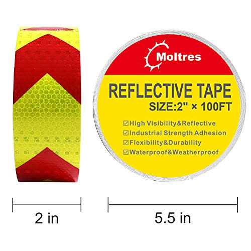 Moltres Waterproof Reflective Tape,Red Yellow 2 inch X100 Feet Conspicuity Adhesive Safety Tape,High Visibility Arrow Hazard Warning Reflector Tapes