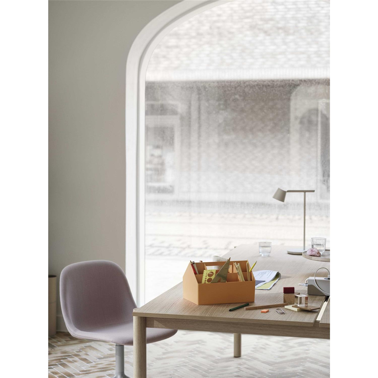 Versatile: Sketch Toolbox by Muuto With its straight-lined design and the diagonally arranged compartments, the Sketch Toolbox by Muuto is reminiscent of the simple architectural layout of a house. Thus, it also offers storage spaces of different sizes for the most diverse utensils and purposes. Thanks to the handle integrated in the design, Sketch is easy to transport and thus a helpful and pleasant companion in your four walls – whether in the kitchen, home workshop or at the nomadic workplace. Material and format The versatile toolbox is made in Denmark from at least 91% recycled post-consumer plastic waste. It measures 26 x 17.5 cm and is 16.5 cm high overall.