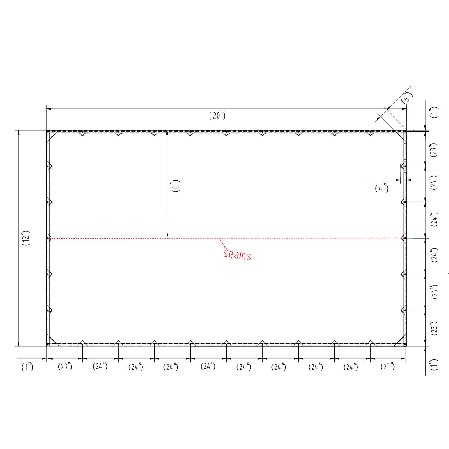 Tarps by Mytee Products. Details:Heavy Duty water resistant 12′ x 20′ (finished size) Canvas Tarps from Mytee Products are made with 12 Oz Polyester Material. This Canvas Tarp’s color is Tan and treated to be water resistant and breathable. You will find double Stitches on this Canvas Tarps Grommets spaced evenly every 30-36″ (Center to Center). See Tarp Diagram for exact spacing. Canvas tarps are great for covering stationary items. They reduce condensation as Canvas is a breathable fabric. The thickness of canvas tarps is 21 mil. Weight of 12′ x 20′ Canvas Tarp is 21 lbs. Cut Size vs Actual Size for Canvas Tarps: All our Canvas tarps are hand made and cut-size is going to differ from the listed size by upto 2% or 6″.