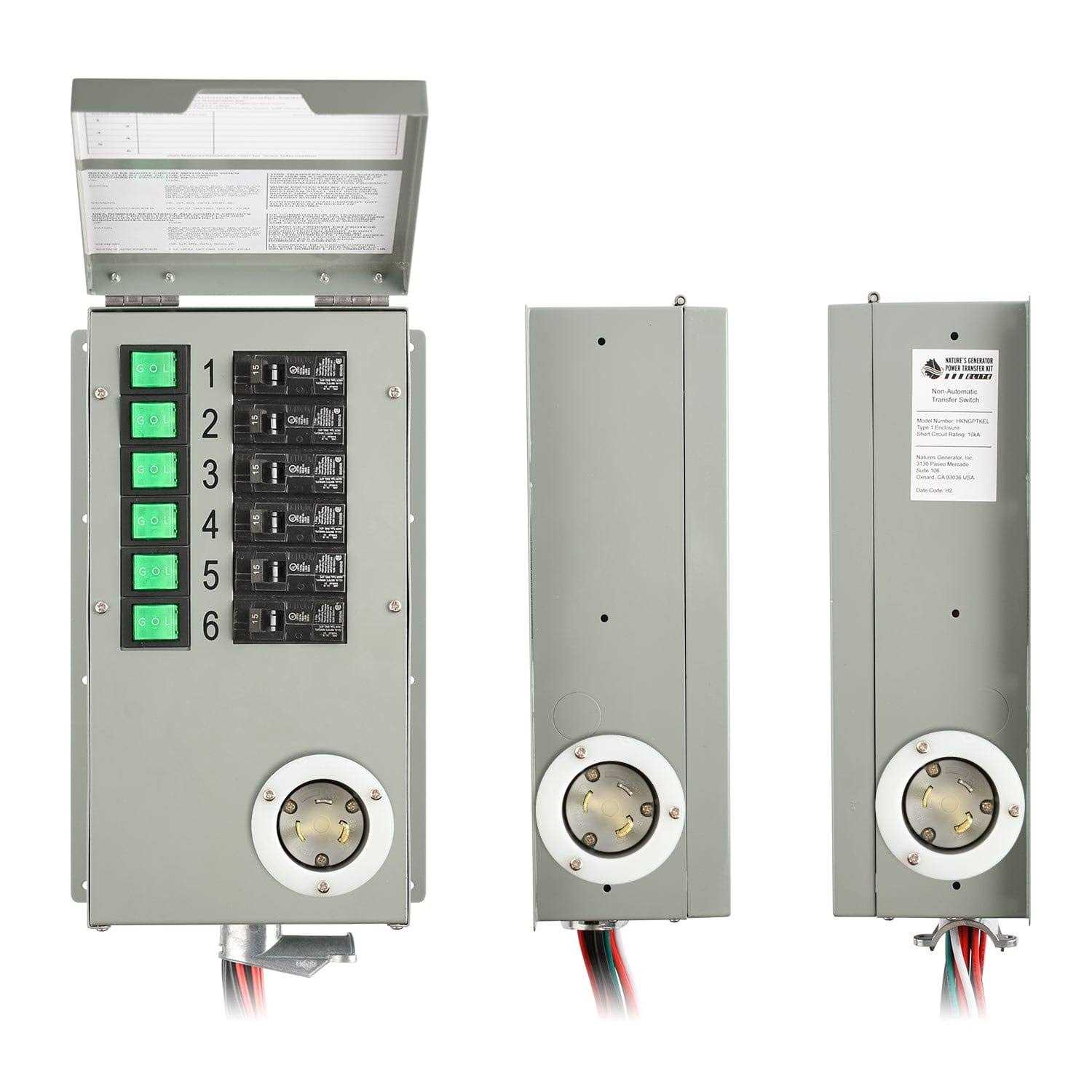 Incorporate the Indoor Elite Power Transfer Switch Kit from Nature’s Generator in your home to keep all of your critical items going in case of power loss. This 6-circuit, 30 Amp manual transfer switch is designed for fast installation (indoors) in a home, office, or small business. It is completely pre-wired and enables the electrical system of the building to accept the power of a portable generator to run up to six single-pole circuits and any pair of single-pole circuits can be used as a double-pole circuit. It allows you to power electrical appliances, devices, and lighting during a power outage. This transfer switch completely codes compliant and keeps the generator power isolated from the utility power at all times. Circuit breakers are 1-inch interchangeable and can be changed to different sizes and brands that are compatible and within the maximum circuit size ratings. This Indoor Elite Power Transfer Switch Kit from Nature’s Generator is the perfect addition to your house for all your power generating needs.