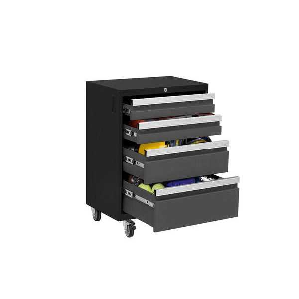 Designed with a compact footprint for under-worktop storage, the Bold 3.0 Series Rolling Tool Cabinet features 4-inch giving you a mobile storage solution for your garage. The 4 full-extension drawers on double ball bearing slides keep your tools separated and organized, with premium drawer liners to keep your gear in place.