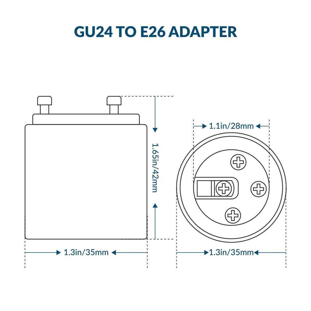 Use this Gu24 to standard socket enlarger to ensure you can still use your Gu24 base bulbs. Screw your Gu24 base bulbs into this adapter and you’ve converted it into E26 for a standard light bulb socket. Don’t get frustrated by an incorrect base type ever again.