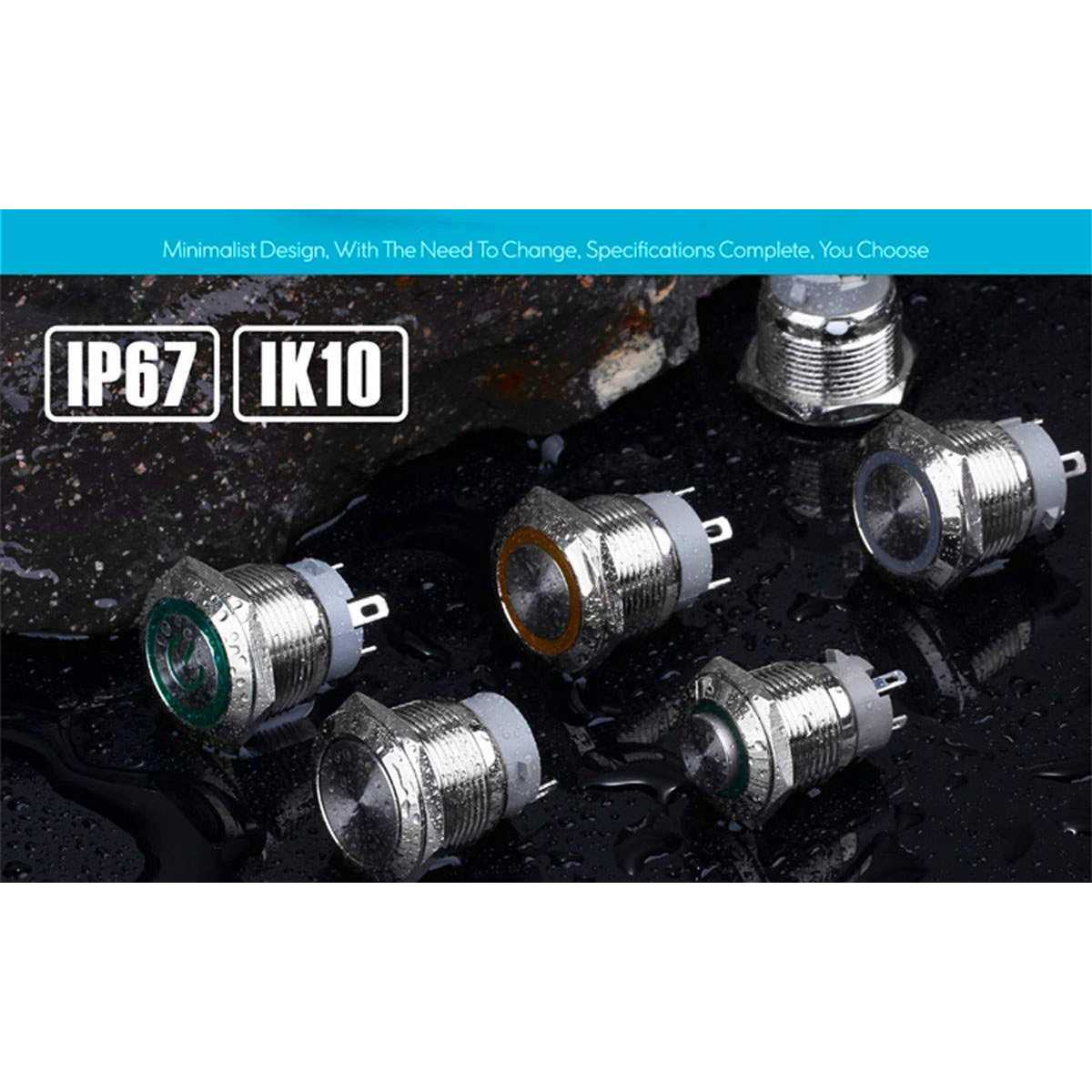 Pushbutton Switches by NOYITO. Details: Suitable for DIY Computer Switch and Restart Button . Metal Button Technical Parameters LED Parameters: LED Type: High brightness LED lamp , Cool. Rated Voltage : 3-6V. Rated Current: ≤20mA. Switch rated load: 12mm switch – AC/DC 220V 3A Max; 16mm switch – AC / DC 220V 5A Max. Switch Type : Fast moving single contact. Contact resistance : ≤50mΩ. Insulation resistanace : ≥1000MΩ. Insulation strength : 2000VAC. Ambient temperature : -20°C – +55°C. Waterproof grade IP67, Explosion grade IK10(for metal material) Operating pressure : 2.5- 4.5 N. Outer Shell: Stainless steel. Press key : Stainless steel. Base seat : Engineering plastic. Touchpoint: Silver alloy. [About after-sales service] Our aim is to provide the best products and services for every customer., which will be valuable for us to develop new products.