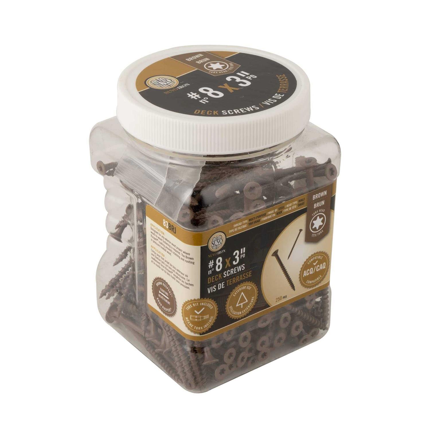 Nuvo Iron Deck Screws Jar #8 x 3″ – 250 Count, Brown