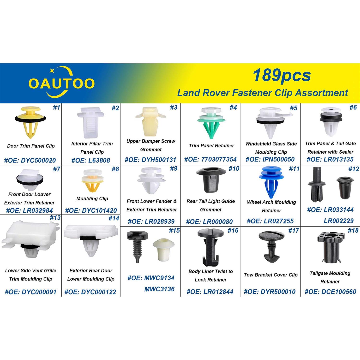 Oautoo 189pcs for Land Rover Body Interior and Exterior Retainer Fastener Clip Assortment 20 Most Popular Sizes & Applications