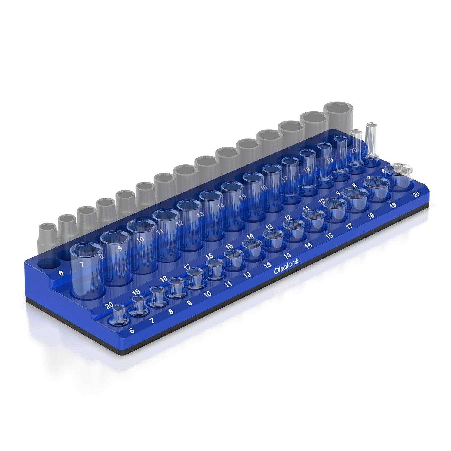 Olsa Tools | 3-Row Magnetic Socket Holder Metric / 3/8 / Blue