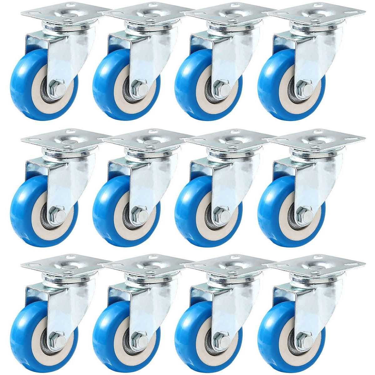 Online Best Service 12 Pack Caster Wheels Swivel Plate Casters on Blue Polyurethane Wheels PU