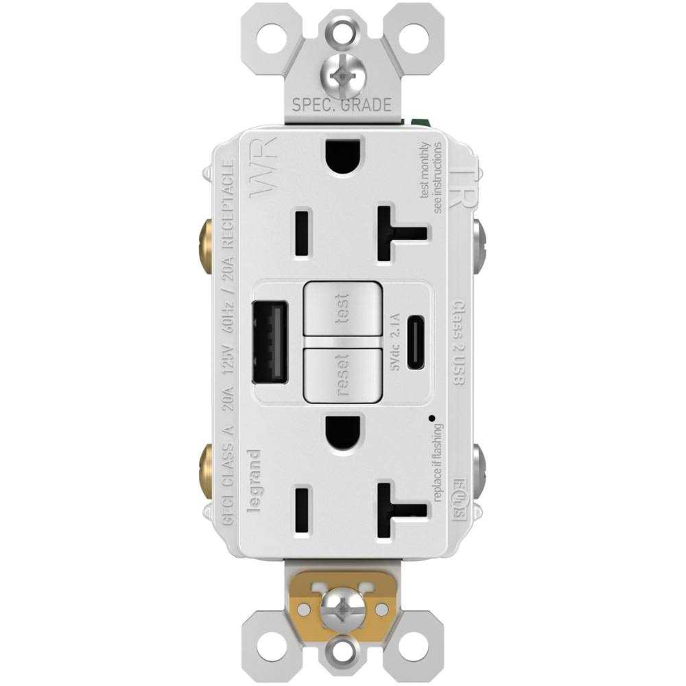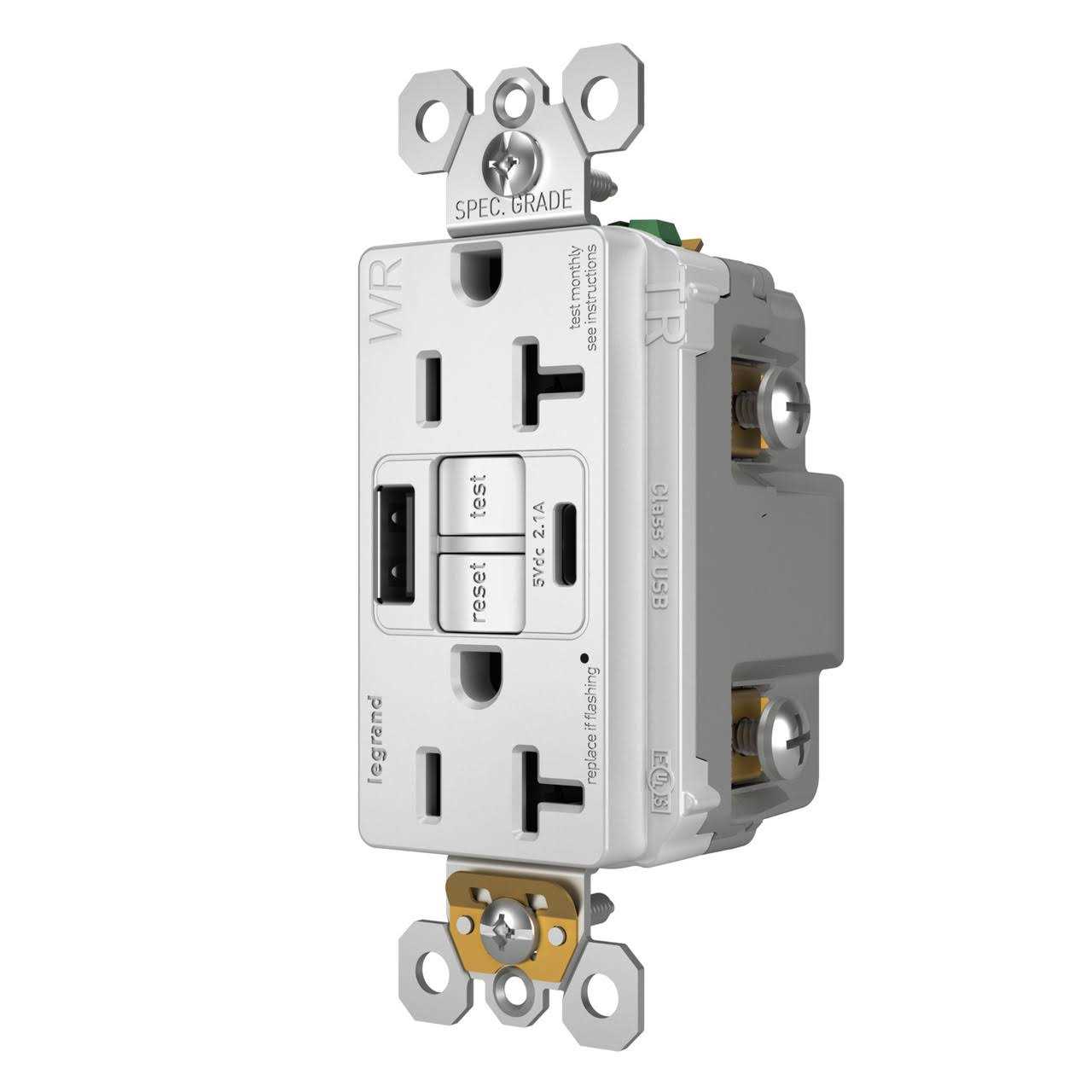 Legrand 2097TRWRUSBACW – Radiant 20 Amp Tamper and Weather Resistant GFCI Outlet with USB Type A/C – White