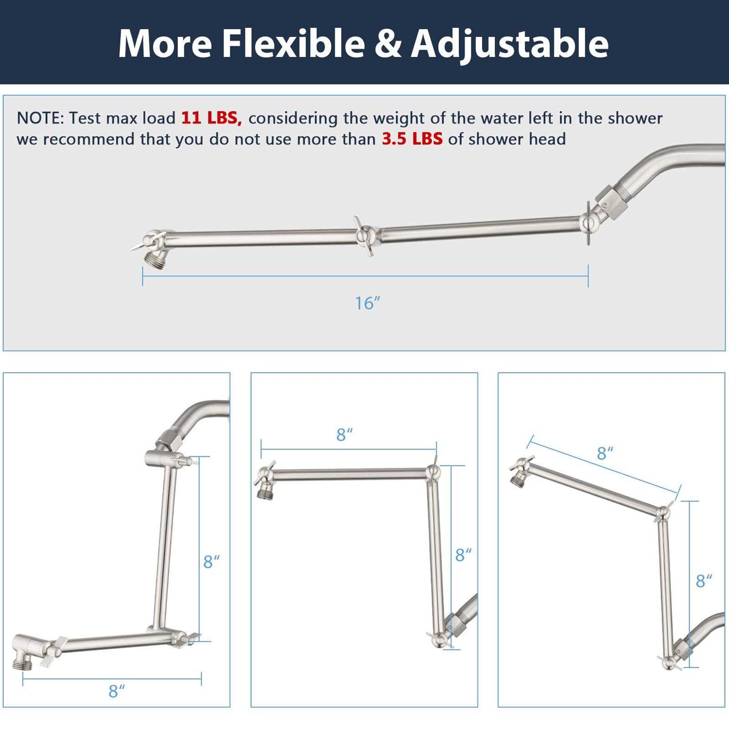 PDPBath Brass 16 Inch Shower Head Extension Arm Upgrade Flexible Height & Angle Adjustable Shower Arm Extender with Lock Joints