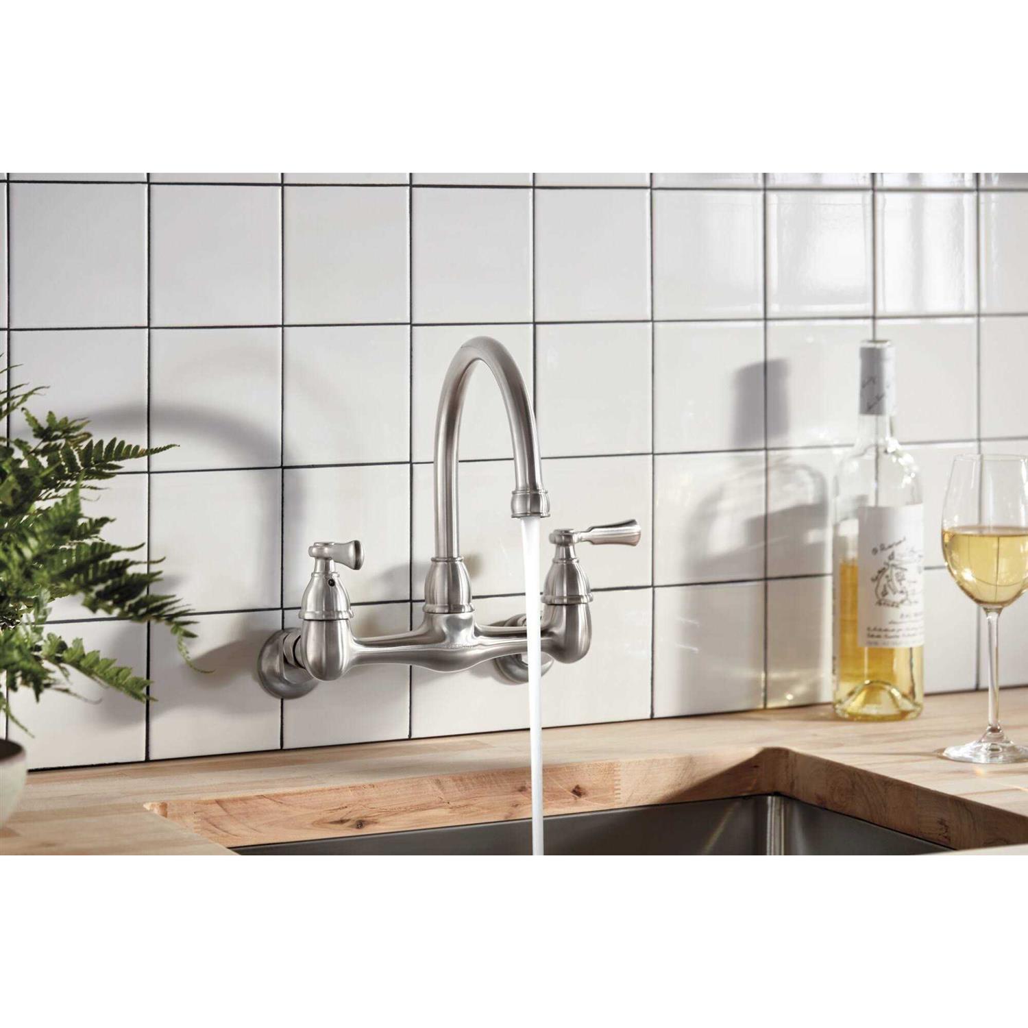 Peerless P2765LF-SS Elmhurst Two-Handle Kitchen Faucet Wall-Mount, Stainless