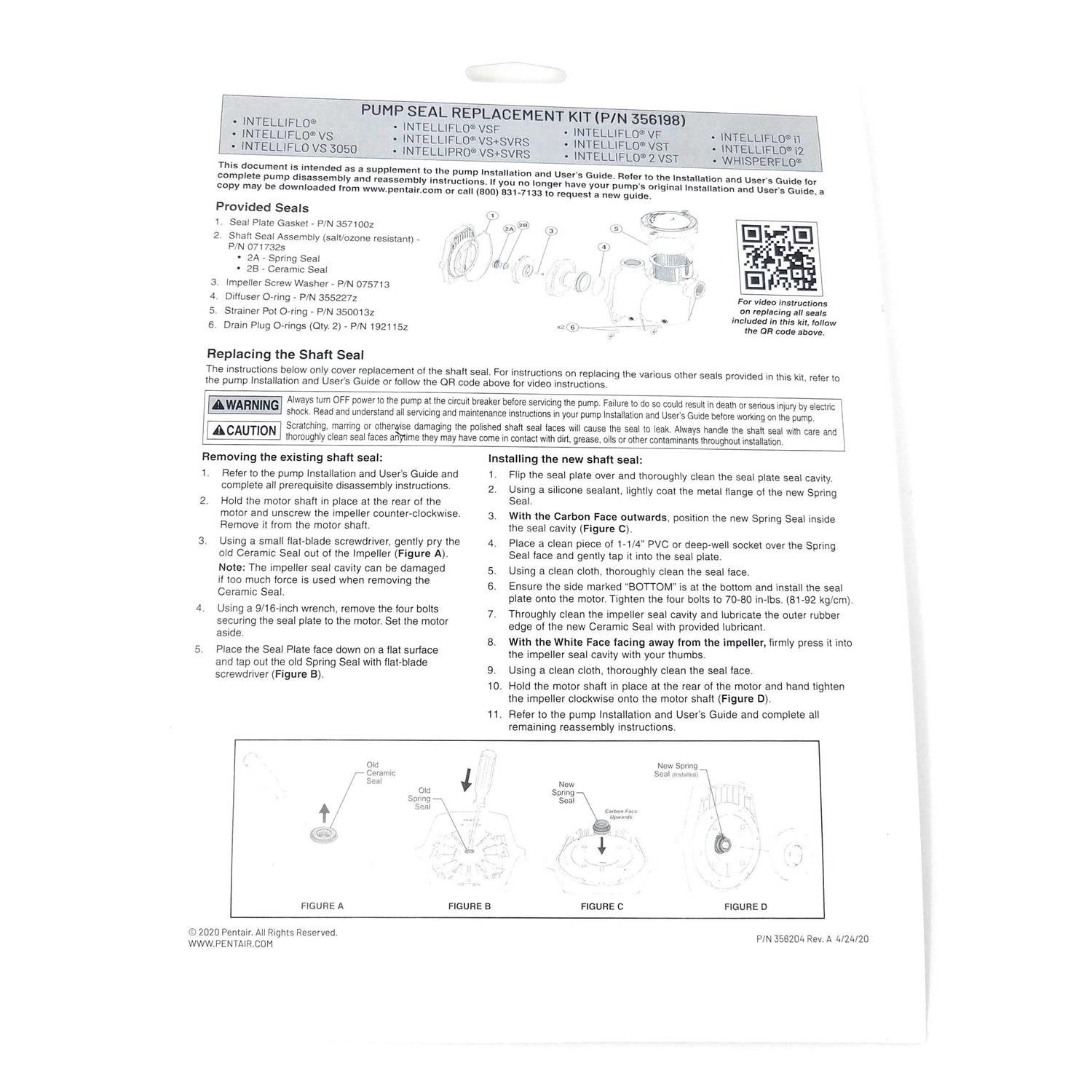 Genuine Pentair brand replacement parts Includes seal and o-rings Every seal kit includes a QR code that will take you to a video showing you how to correctly install the replacement parts Pentair’s Pump Seal Quick Kits include the exact same parts used in production of Pentair equipment. Genuine Pentair seals have been factory tested to provide extreme quality and superior performance compared to generic options. Every seal kit includes a QR code that will take you to a video showing you how to correctly install the replacement parts. Kit fits following Pentair pumps: WhisperFlo, IntelliFlo.