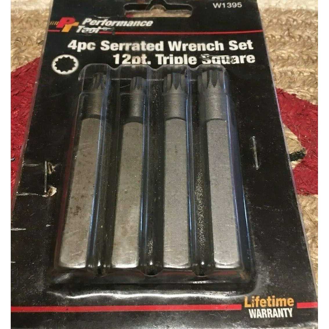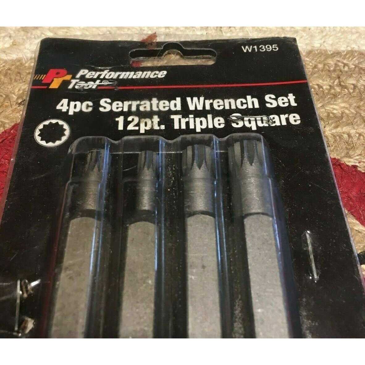 Serrated Bit Set has triple square drives that can be engaged at more frequent angles. Triple square drive fasteners are used in high torque applications.