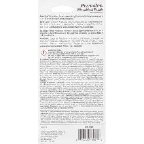 Windshield & Glass Repair Tools by Permatex. Details:Permatex Bullseye Windshield Repair Kit is the first one-component windshield repair system designed to be used by the car owner. May be used to make air-tight repairs of bullseye damage up to 1 1/4″ in diameter on most laminated windshield glass. Safe and easy to use. Requires no mixing or heat and makes the repair virtually undetectable.