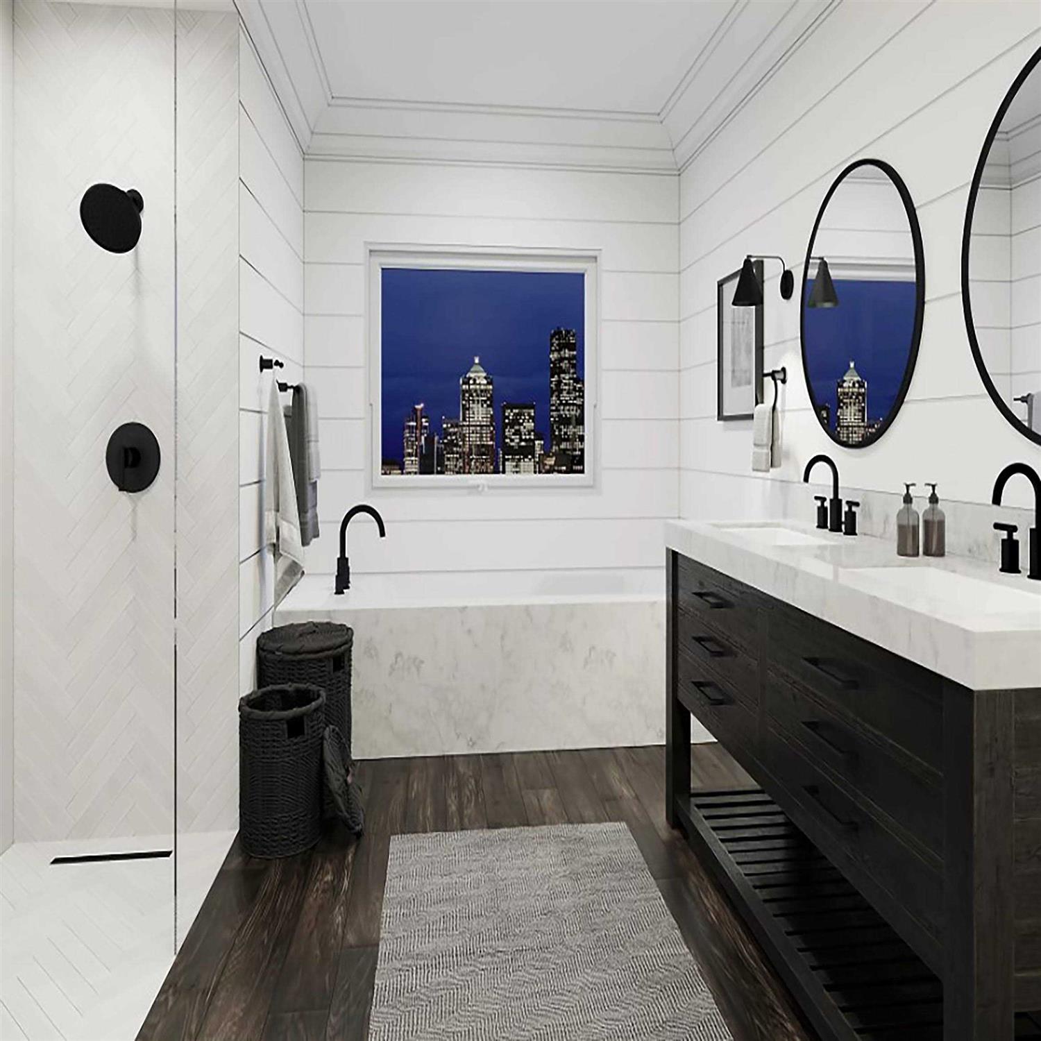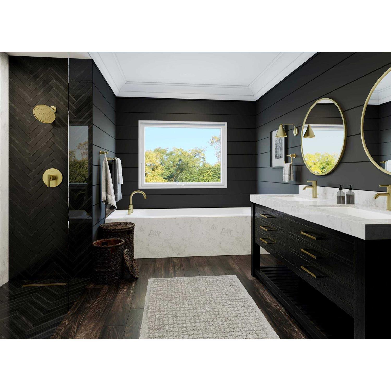 Valve body sold separately. 2-hole installation. Hot/Cold indicator on trim Quick trim wall flange eliminates exposed screws and cuts installation time by 50%. EZ Clean spray face allows you to wipe away mineral deposits with the swipe of a finger. Invigorating spray helps relieve tension. Rated to meet or exceed CALGreen criteria, which helps to conserve water in the average home by at least 20 percent.